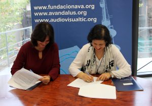 La decana del Colegio Profesional de Periodistas de Andalucía, Eva Navarrete Maceas, y la directora de la Fundación Audiovisual de Andalucía, May Silva Ortega, han firmado en Sevilla un convenio de colaboración para desarrollar iniciativas conjuntas y complementarias.