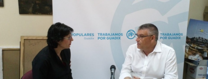 Imagen en la que Encarni Rodríguez, actual teniente de alcalde, entrevista al que sería tras las elecciones municipales de mayo de 2019 el nuevo alcalde de Guadix, Jesús Lorente (PP). La entrevista fue realizada antes de conocerse la lista con la candidatura del Partido Popular en la que también iría la propia Encarni Rodríguez.